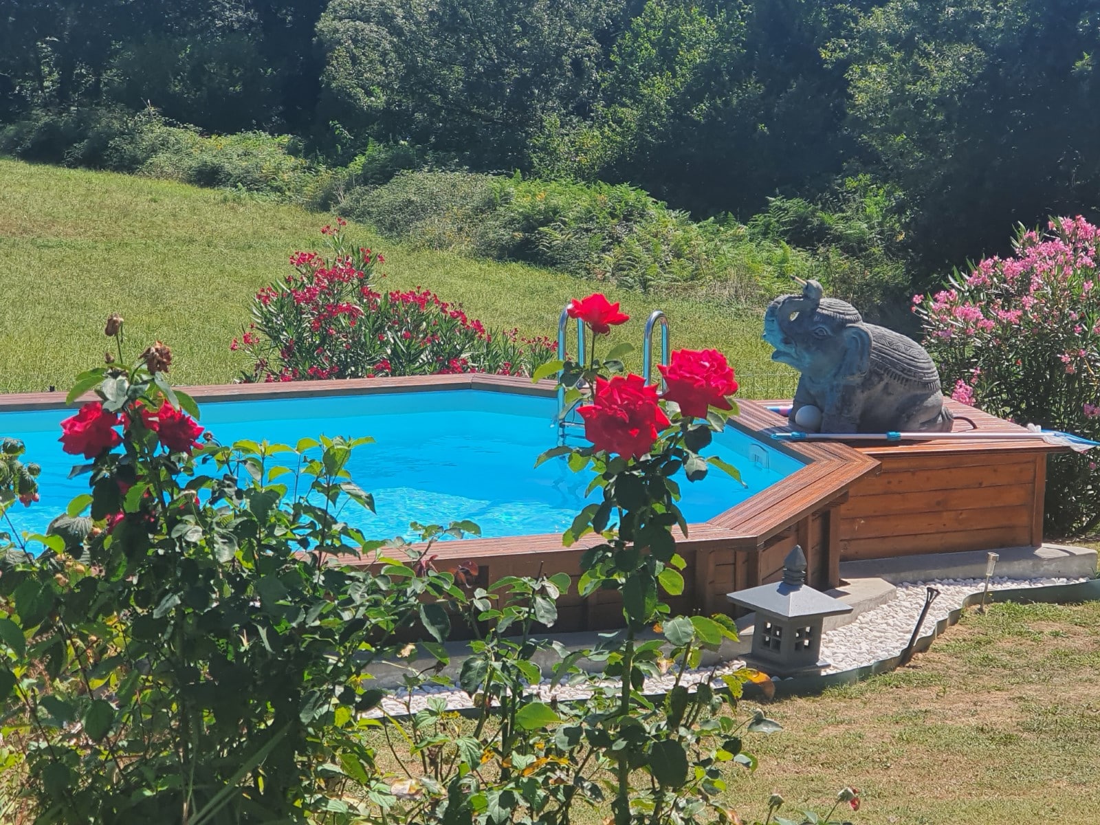 À quelques pas, la piscine vous attend pour prolonger la détente. Entourée de végétation, elle est parfaite pour se rafraîchir, lire, bronzer, ou simplement profiter de l’instant présent.